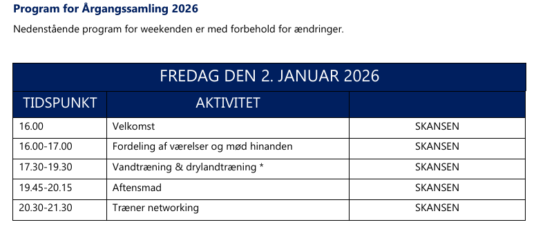 Vedhæftet finder i de vigtigste informationer omkring Årgangssamlingen der afholdes i Aalborg d. 2-4 januar 2026
